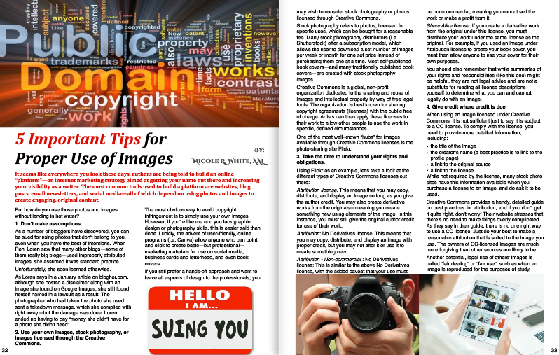 I’m so excited to share my article, “5 Important Tips For Proper Use Of Images”, in the September issue of InD’Tale Magazine. In Canada, we don’t usually say “attorney” to mean lawyer, so it took me a few seconds to figure out what the “AAL” in my byline stands for (attorney at law)!